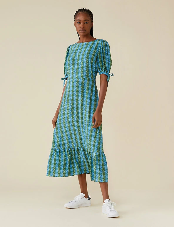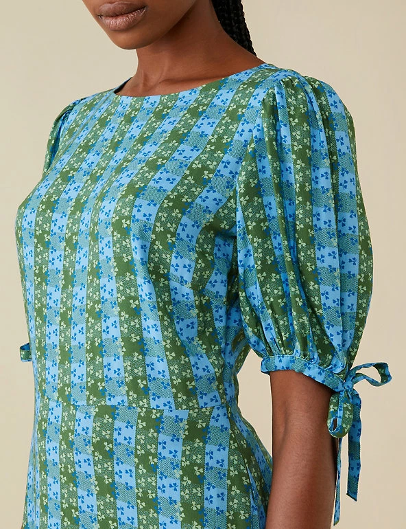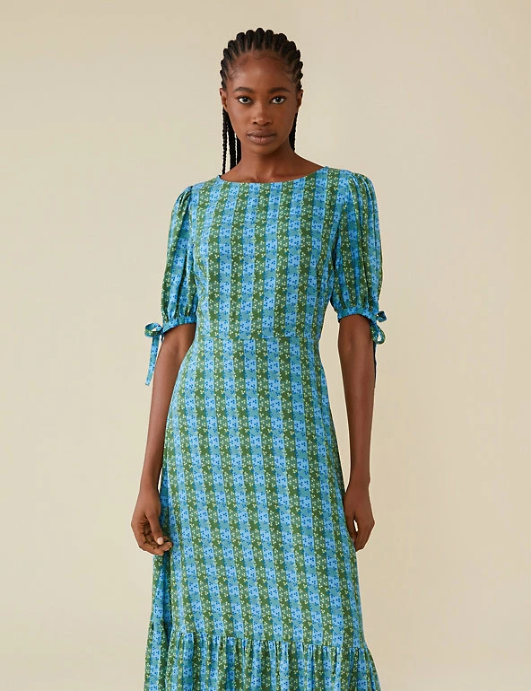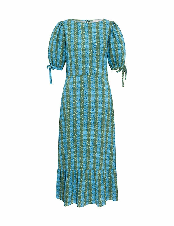 This Finery London tea dress will become your new summer favourite. Cut to an effortless regular fit, it features a flattering waisted design and short puff sleeves with tie detailing. A tiered midi skirt and floral gingham print gives this dress a fresh feel. It fastens with a concealed side zip and a keyhole button at the back.