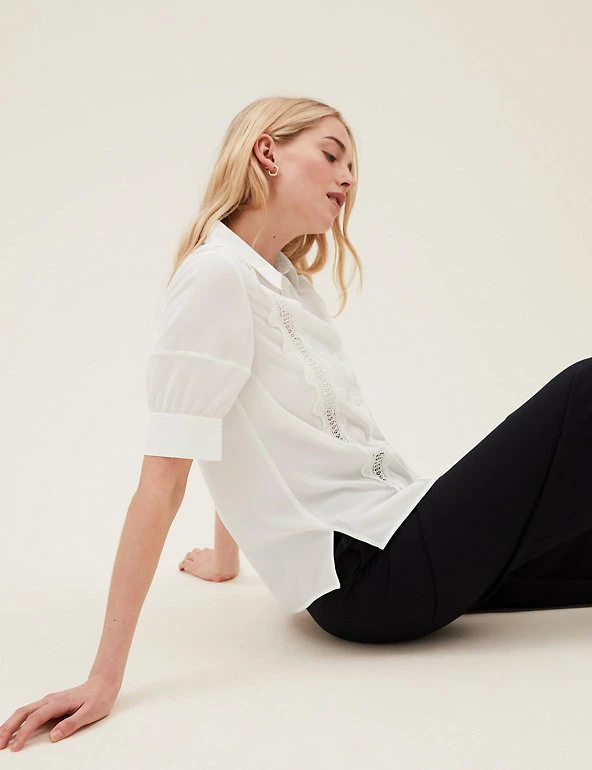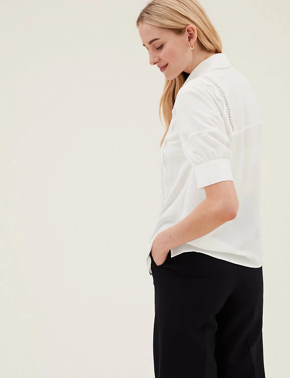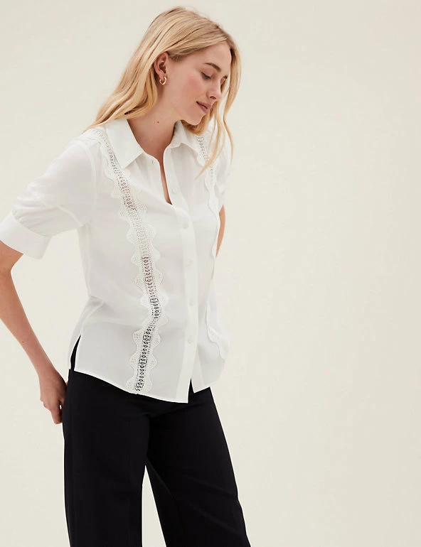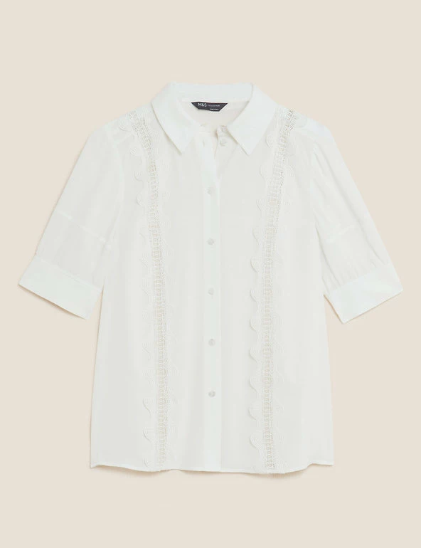 We’ve added two cutwork lace overlay stripes to this shirt for intricate detail. Regular fit, with short sleeves and a button-down fastening from the collared neck for a tidy finish. Added stretch for all-day comfort. M&S Collection: easy-to-wear wardrobe staples that combine classic and contemporary styles.