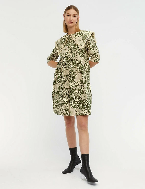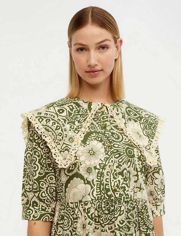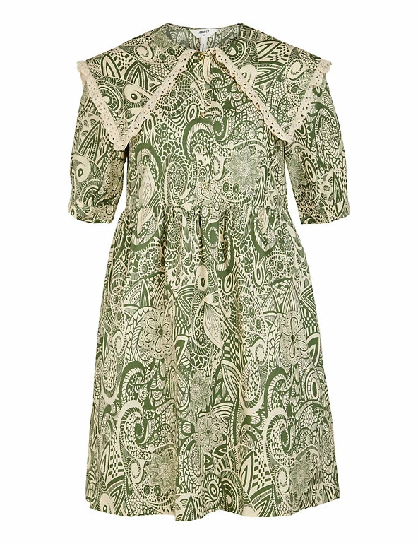 This pure cotton shirt dress from OBJECT is what happens when statement collars and retro-inspired prints meet. It’s cut to an effortless fit for throw-on-and-go style, with cool short sleeves and a knee-length hem. The collar features a feminine lace trim, and the matching button fastenings have an elegant gold metallic rim.