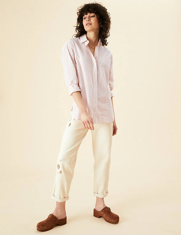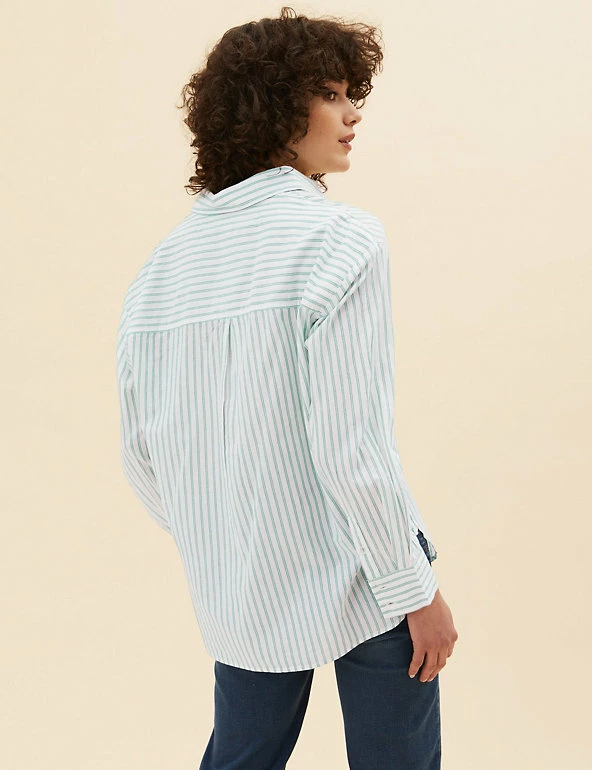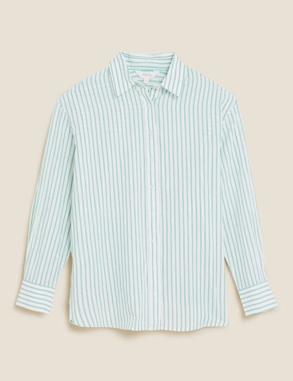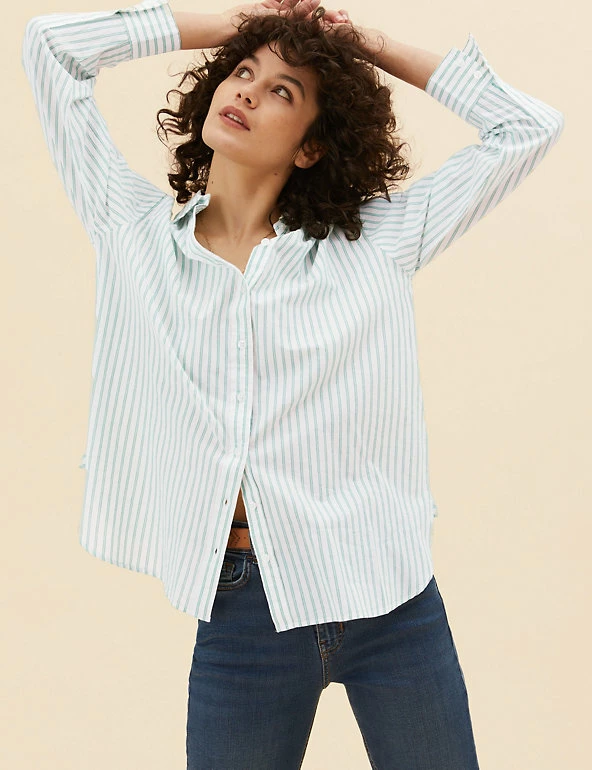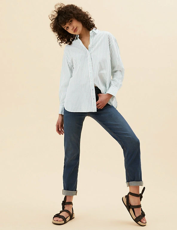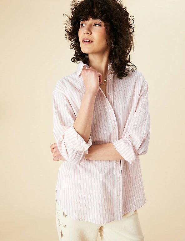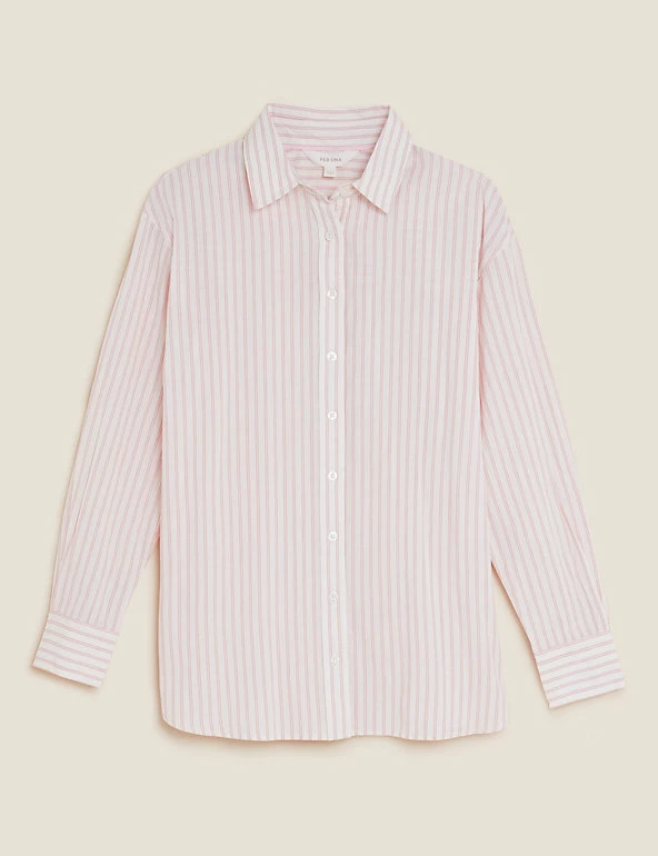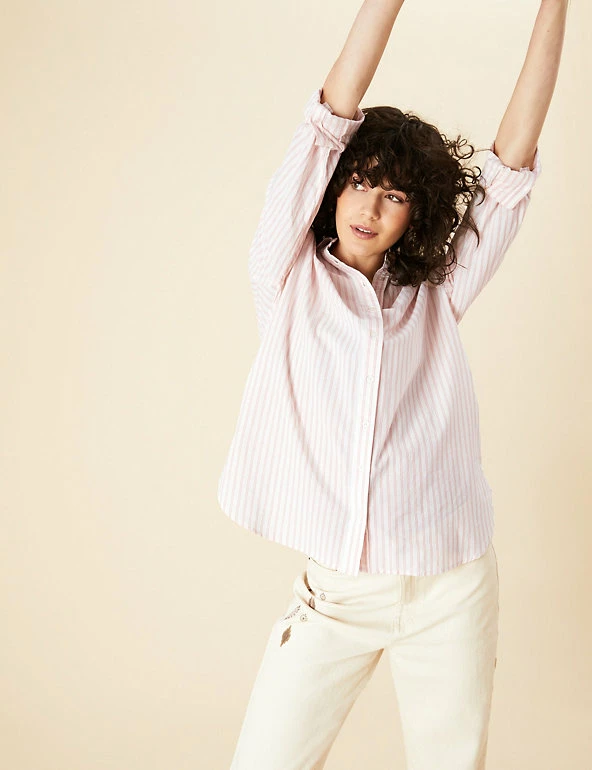 We’ve crafted this Per Una shirt from pure cotton for a cosy feel. It has a regular fit and slim yarn-dyed stripes for a smart effect. A neat button fastening leads down from the collared neck and the long sleeves finish in formal cuffs for a tidy finish. We only ever use responsibly sourced cotton for our clothes.