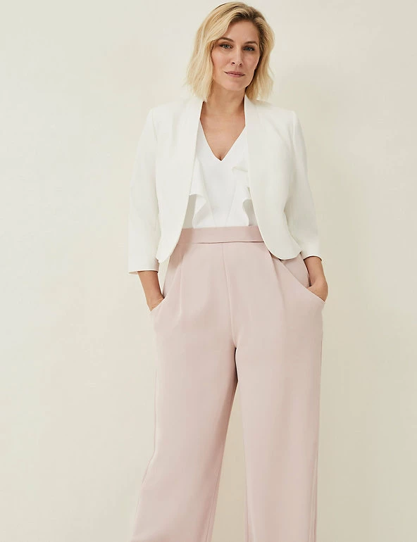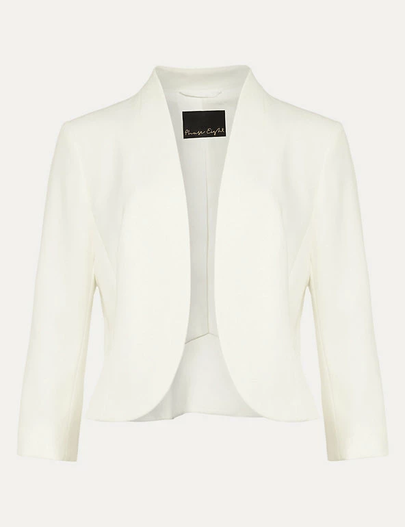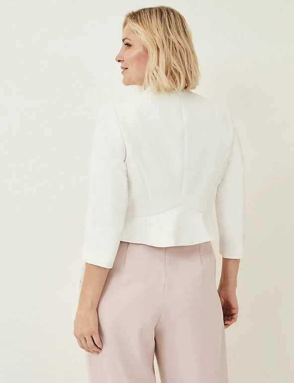 Dressed-up looks just got a sophisticated spin, thanks to this short occasion jacket by Phase Eight. It has a figure-flattering fitted cut and an open front to complement your outfit underneath. A frilled panel at the back lends an elegant flourish.