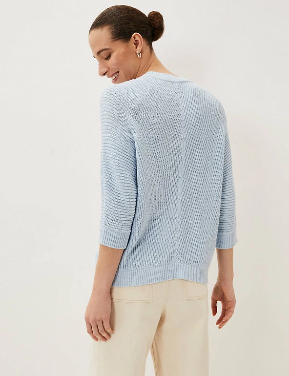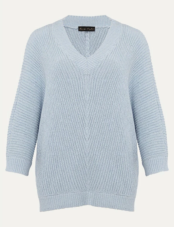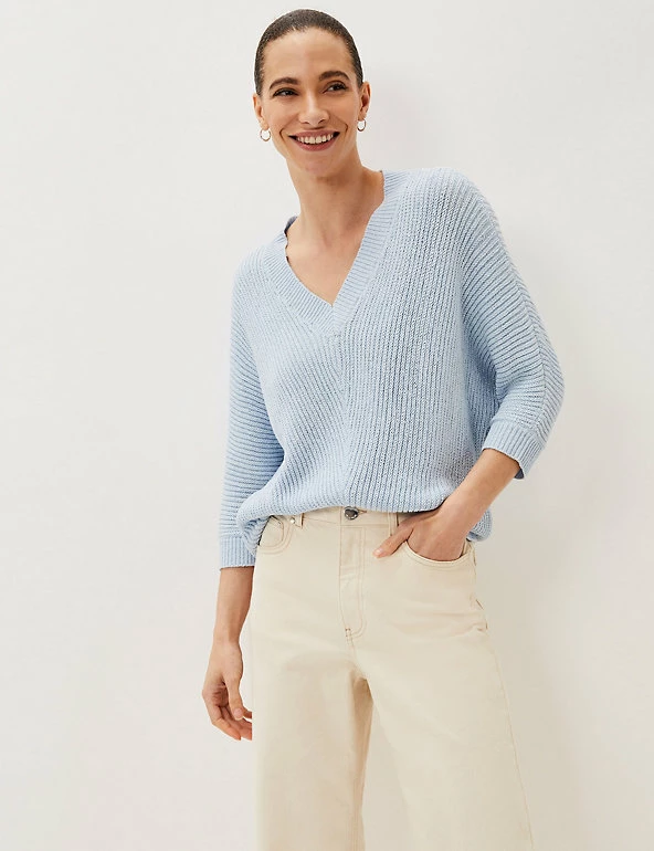 This ribbed jumper by Phase Eight is equal parts warm and stylish. It’s cut to an effortless regular fit, with a flattering v-neck and 3/4 length sleeves for just the right amount of coverage. The thick stitching creates a chevron-style finish for extra texture and interest.