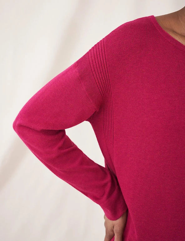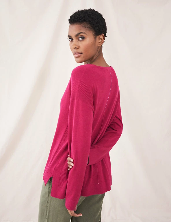Meet your new favourite cotton-rich jumper from White Stuff. This regular-fit design has a classic crew neck, plus a stepped hem for a flattering finish and easy layering. Ribbed detailing on the sides adds texture, while the sleeves can be rolled back to reveal a pop of contrast stripe print.