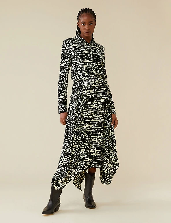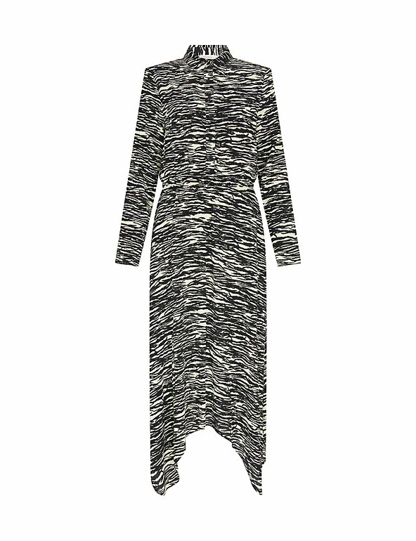 Stand out from the crowd on any occasion, in this zebra print shirt dress from Finery London. It’s made in a comfortable regular fit, with an authentic collared neckline and a button-through bodice. The long sleeves are closely fitted for a neat silhouette, and the midi length hemline is cut in a contemporary handkerchief shape.