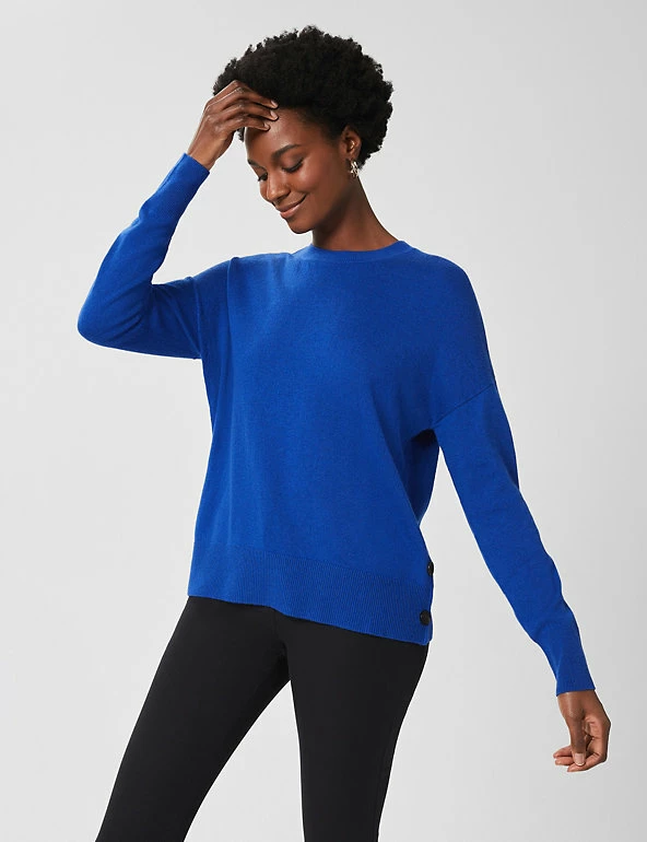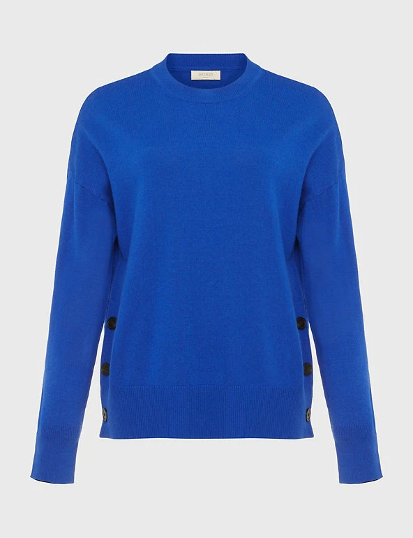 Crafted from a luxuriously soft merino wool blend with a hint cashmere, this Hobbs jumper takes comfort to the next level. This piece is knitted in a regular fit and has a crew neck for a classic look. Ribbed trims add extra cosy touches, while button detailing along the sides brings a modern finish.