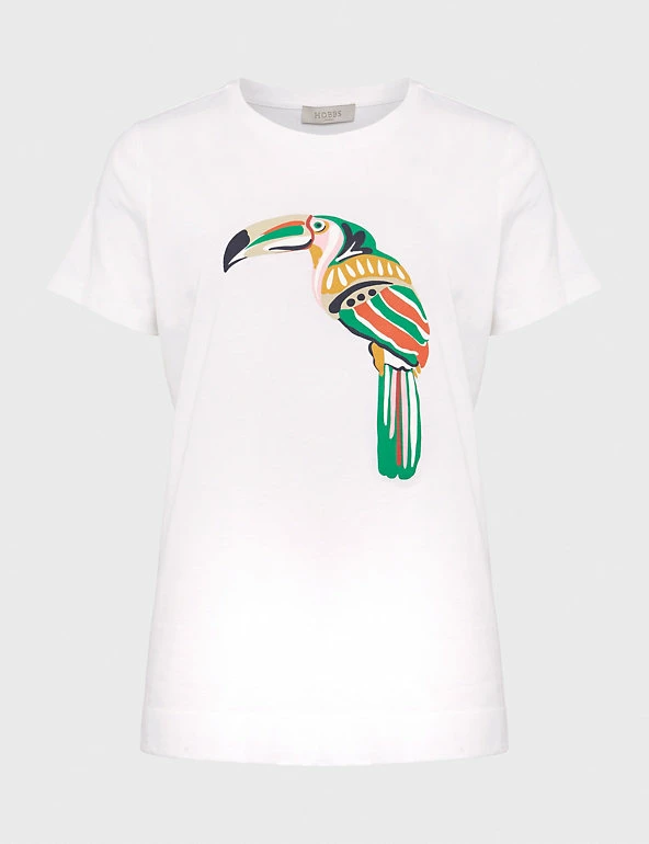 A colourful printed toucan on the chest brings some artistic flair to this pure cotton t-shirt from Hobbs. Cut to a regular fit, the weekend staple features a classic round neck. This brand is proud to invest in making cotton production more sustainable.