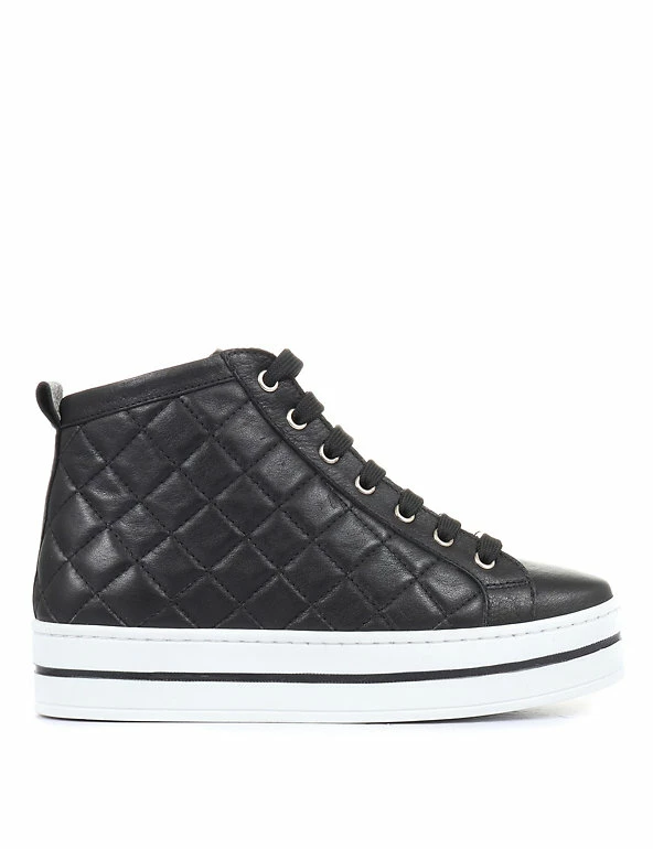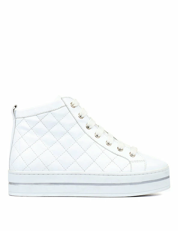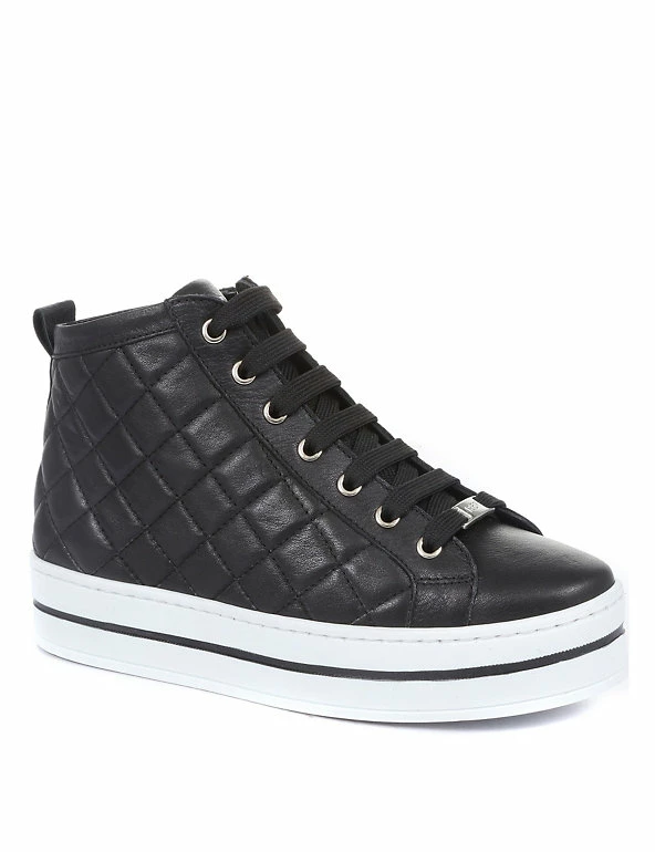 Crafted from premium leather with a quilted texture, these high-top trainers from Jones Bootmaker are full of standout style. They’re designed in a comfy regular fit with luxurious leather linings for breathability. A classic lace-up fastening provides the finishing touch.