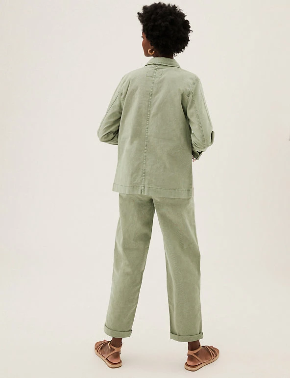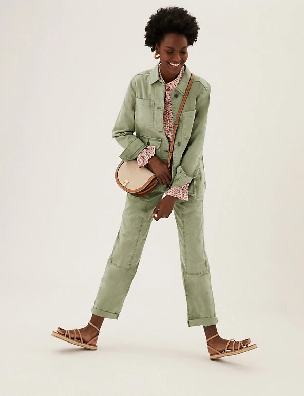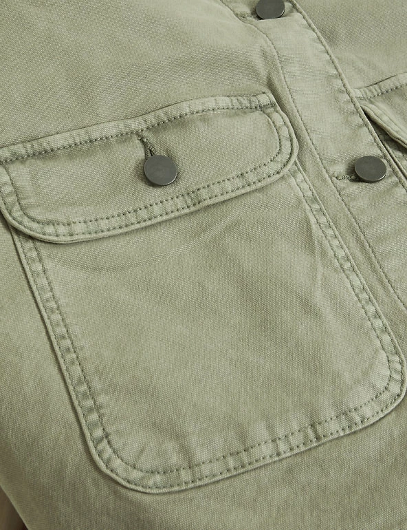 Add an edge to your look with this cotton-rich utility jacket, inspired by carpenter style. It’s cut to a regular fit with a smart collared neck. The four-pocket design includes two on the chest and two pockets at the bottom so you’ve got plenty of room for essentials. We only ever use responsibly sourced cotton for our clothes.