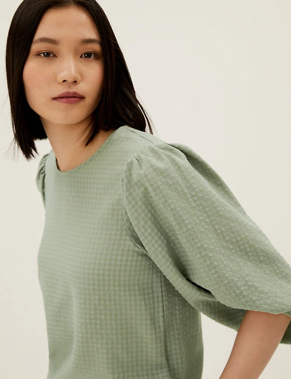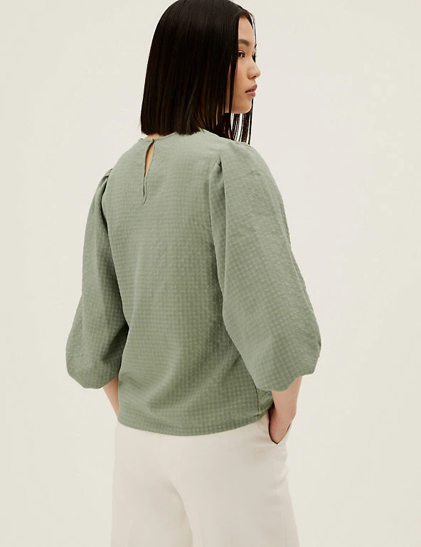 Make a statement with this head-turning checked top. Regular fit, with oversized 3/4 length sleeves for volume. Made with added stretch for all-day comfort.