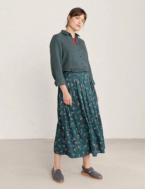 Look to this cotton-blend skirt from Seasalt Cornwall for easy everyday outfits. This midaxi-length style is cut to a comfortable regular fit. The material is gently pleated for a little extra swoosh and features a beautiful floral print throughout. It fastens with buttons at the side.