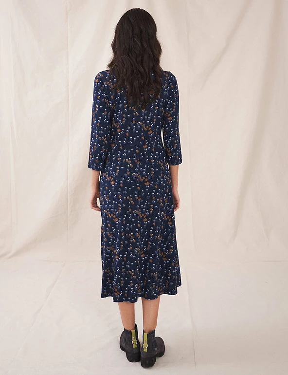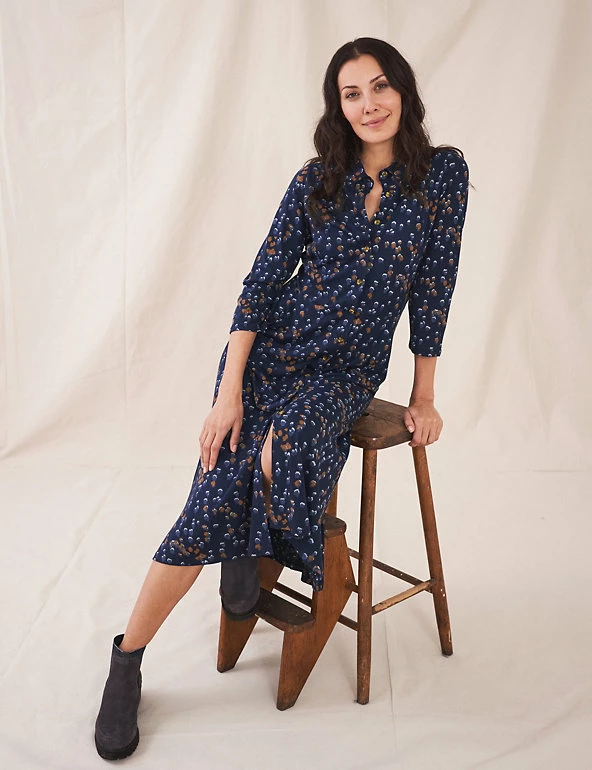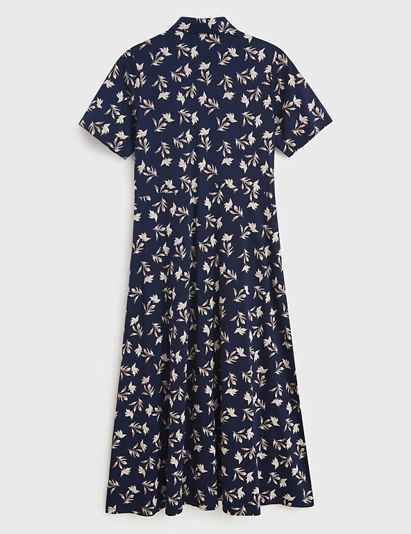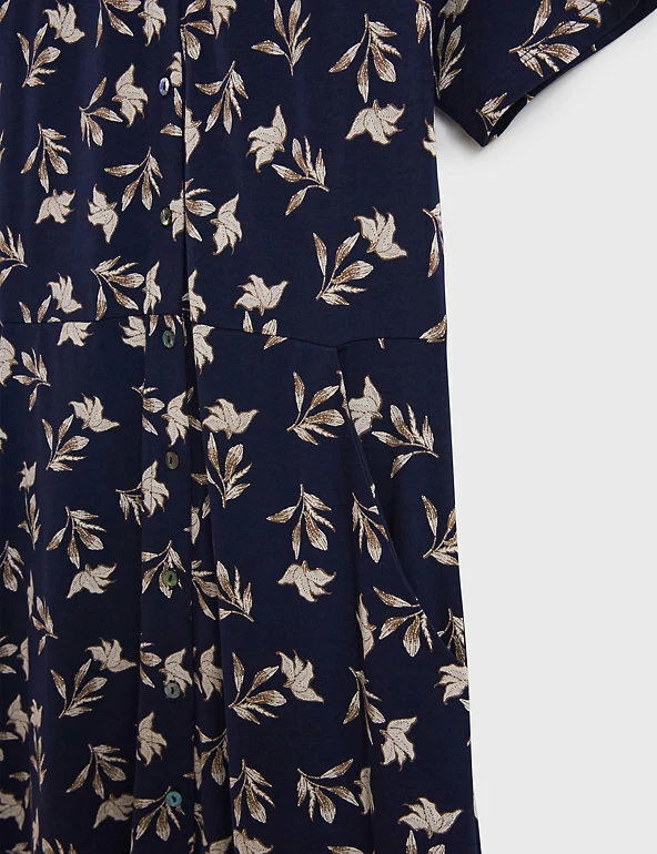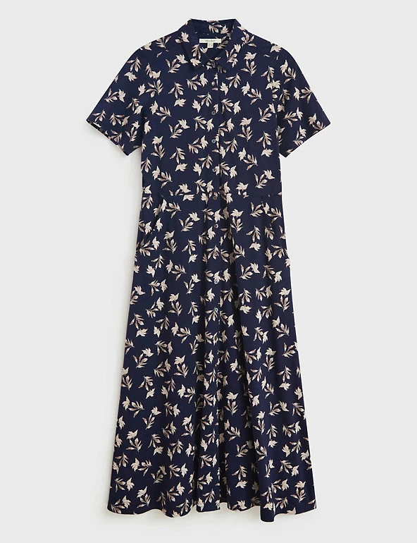Consider this cotton-blend dress by White Stuff your new smart-casual hero. This effortless midi shirt dress comes in a regular fit, with a swishy skirt and short sleeves. The button-through front and collared neckline lend a tailored touch, while the jersey fabric ensures comfortable all-day wear. It’s complete with an all-over leaf print.