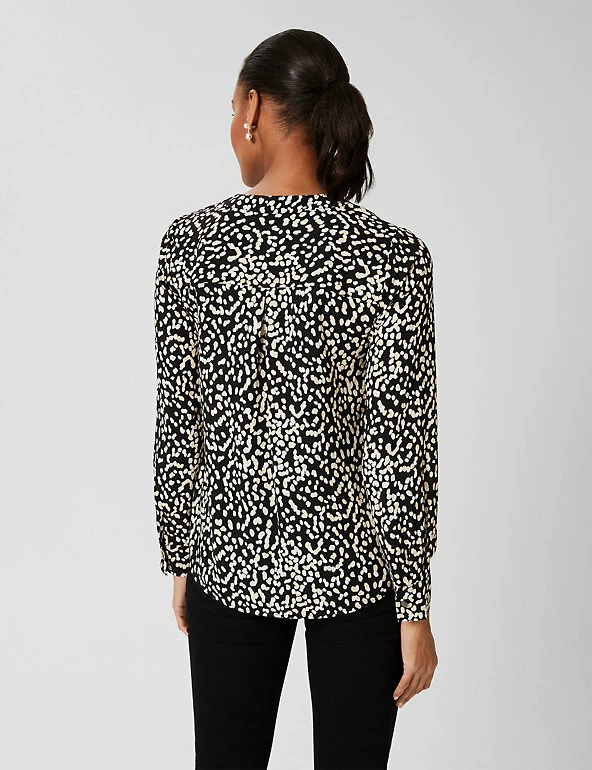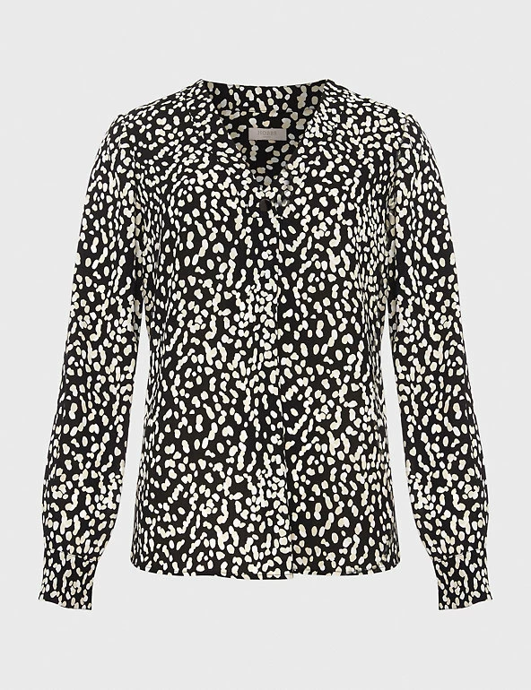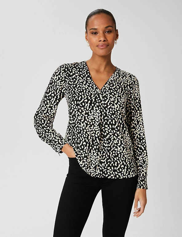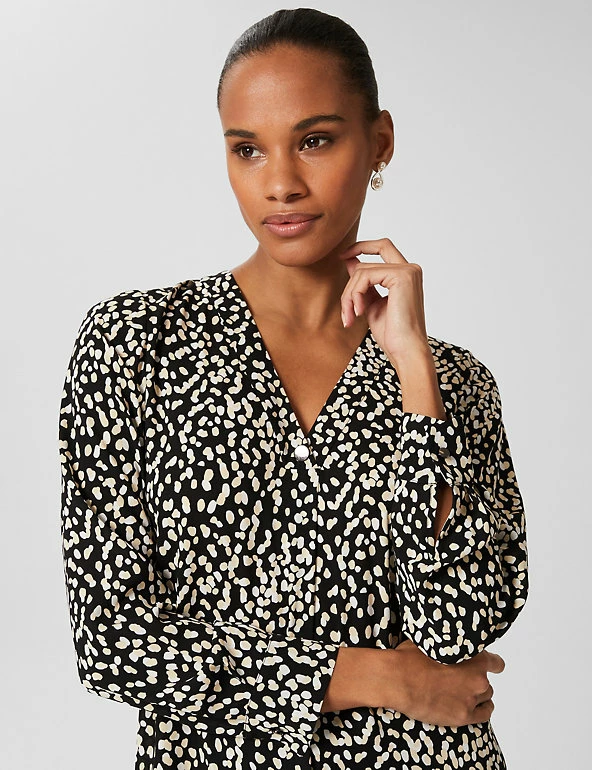 Decorated with an eye-catching print, this modern blouse from Hobbs makes a stylish impact. The chic piece is made in a comfy regular fit and has a pretty v-neck design and elegant long sleeves. Made with recycled polyester.