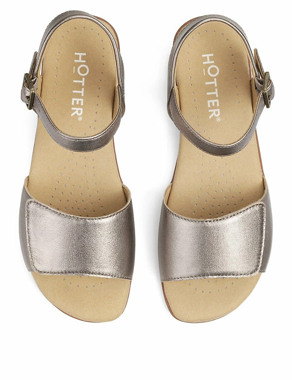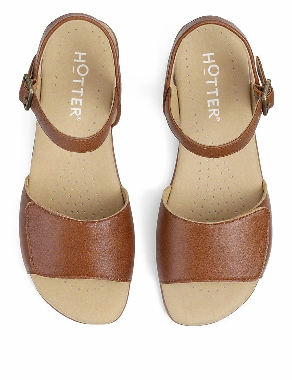 Add an elegant finish to any look with these leather sandals from Hotter. This open-toe design is crafted in a regular fit, with a low wedge heel for everyday comfort. A riptape fastening means you can adjust the fit, while a buckle strap around the ankle adds a smart finish.