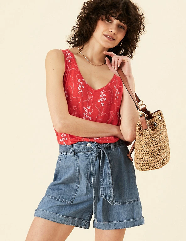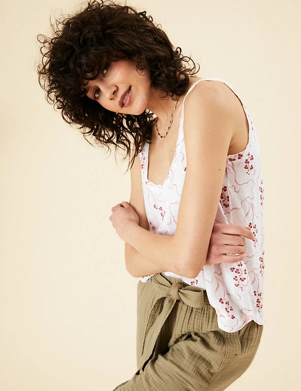 A distinctive print lends a fresh feel to this linen-blend vest from our Per Una range. The sleeveless style is cut to an easy relaxed fit and features a scoop neck for a laid-back look.