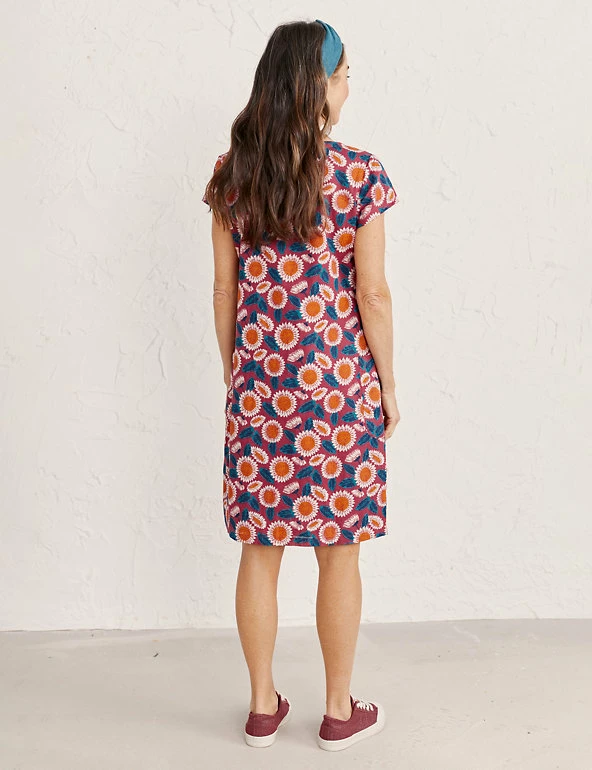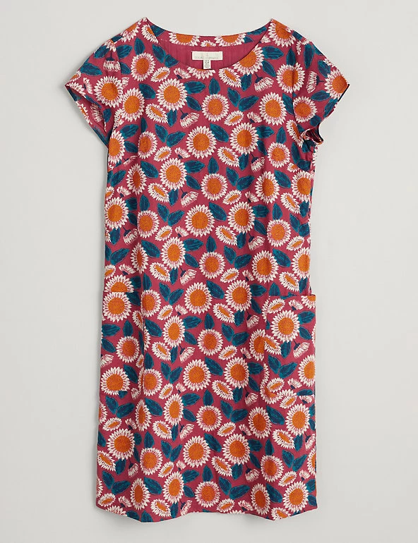 This linen-rich shift dress from Seasalt Cornwall is ideal for days in the sun. It’s designed in a regular fit, with a smart round neck and short cap sleeves. Cut to a sophisticated knee-length, the dress features practical pockets on the hips and a colourful floral print. It’s fully lined for comfort.