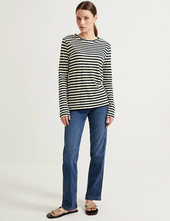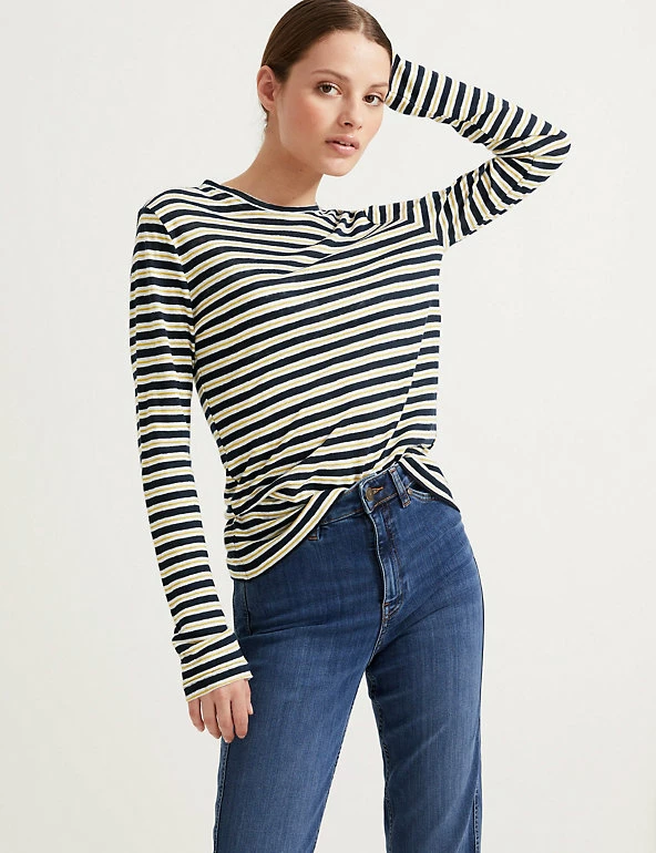 We’ve crafted this Autograph top from pure linen for an irresistibly breathable feel. It has a regular fit with a round neck and classic long sleeves. Stripes give a contemporary look.