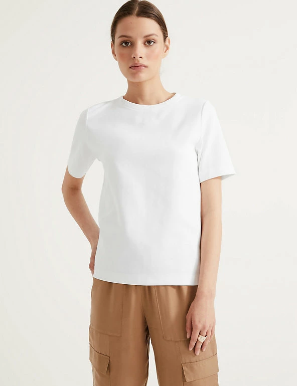 Refine your collection of basics with this cotton-rich t-shirt from our Autograph range. It’s cut to a regular fit in a structured shape, with a classic crew neckline. This piece is made with added stretch for optimum comfort. We only ever use responsibly sourced cotton for our clothes.