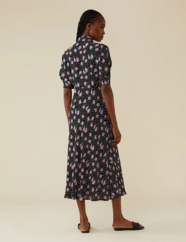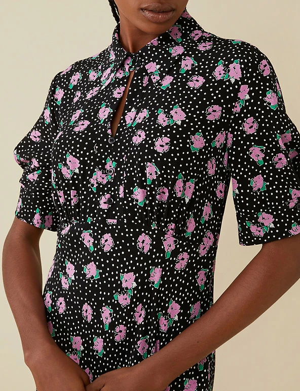 With its cheery florals and traditional polka dots, this Finery London dress has a deeply romantic feel. Its waist-skimming regular fit combines with a drapey hem for a flattering look. The keyhole cut-out at the neck adds flirty detail, while puff sleeves lend subtle volume.