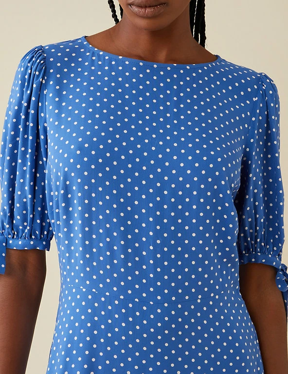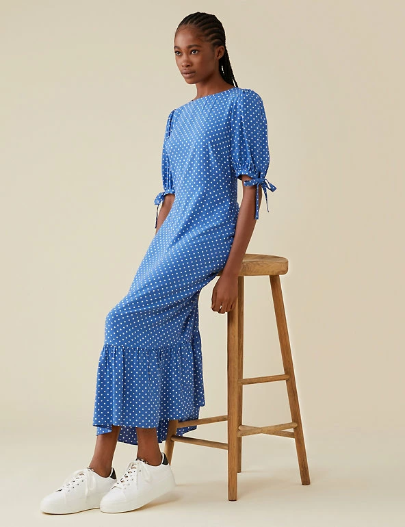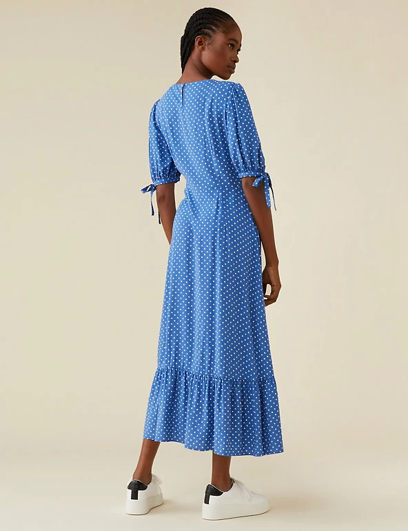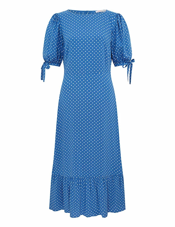 Adorned with playful polka dots, this pretty tea dress by Finery London is ideal for your party wardrobe. This eye-catching piece is cut to a regular fit. It drops to an elegant midi length and is finished with short tie sleeves and a modern tiered hem.