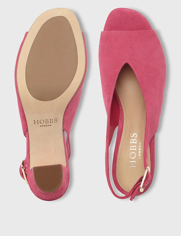 Add the finishing touch to occasion outfits with these suede shoes from Hobbs. They feature a mid-height block heel and a leather lining for comfortable all-day wear. The peep toe design makes them great for the warmer months and a slingback strap provides an extra secure feel. They fasten with an adjustable metallic buckle for a flexible fit.