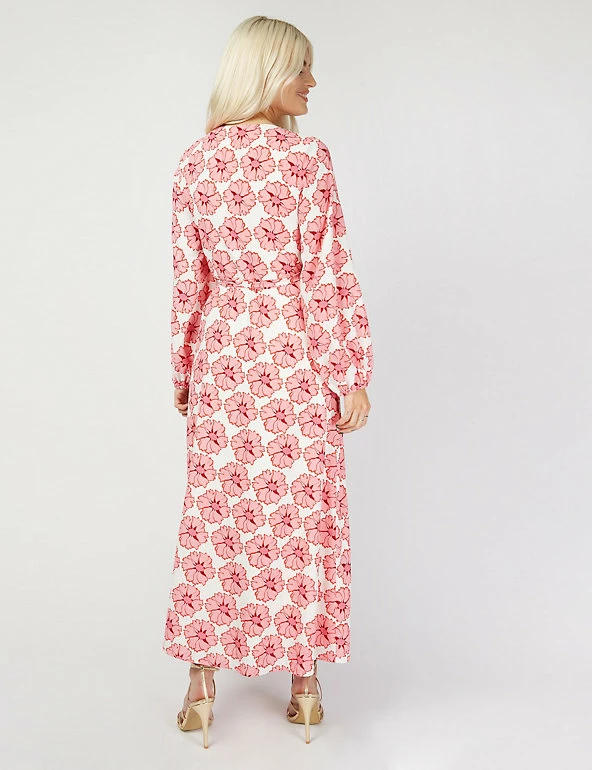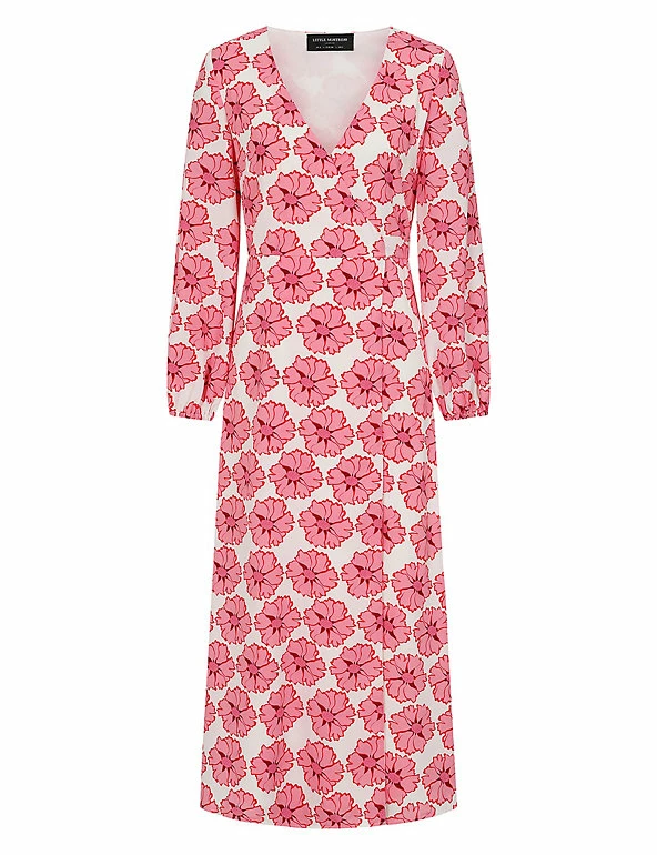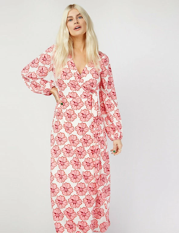 This floral wrap dress by Vogue Williams X Little Mistress will become a go-to summer style. Cut to a flattering regular fit, this fresh midaxi design features an elegant v-neck and long blouson sleeves. The wrap bodice fastens at the side with a matching tie to enhance the waist.