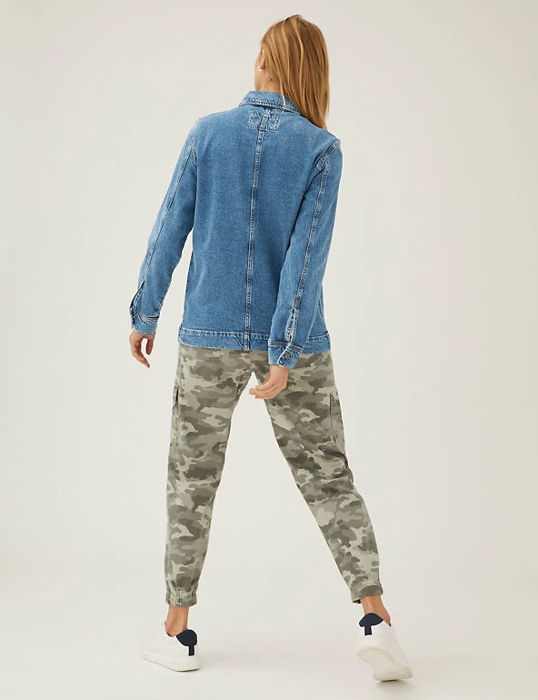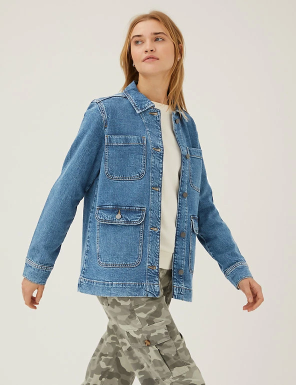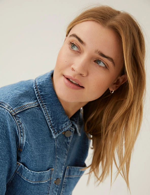 Cotton-rich denim with added stretch gives this utility jacket a durable and timeless feel. It’s cut in a regular fit with four front pockets and a button-down fastening to create an authentic carpenter style. Button cuffs and exposed seams at the back add a dash of detail. We only ever use responsibly sourced cotton for our clothes. Made with sustainably sourced Tencelβ’ lyocell.
