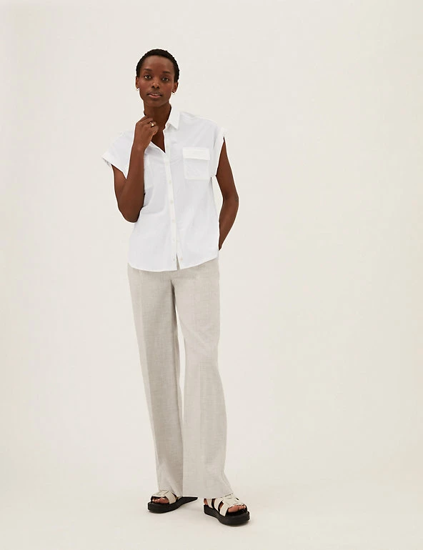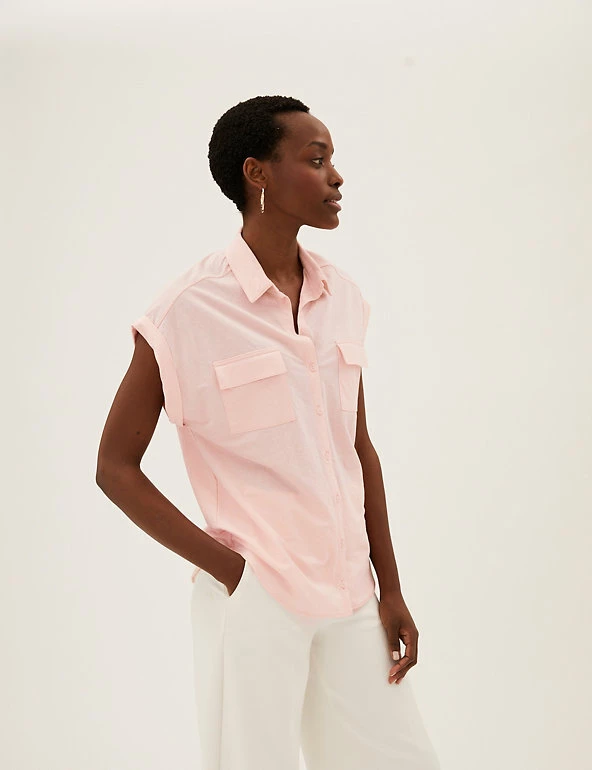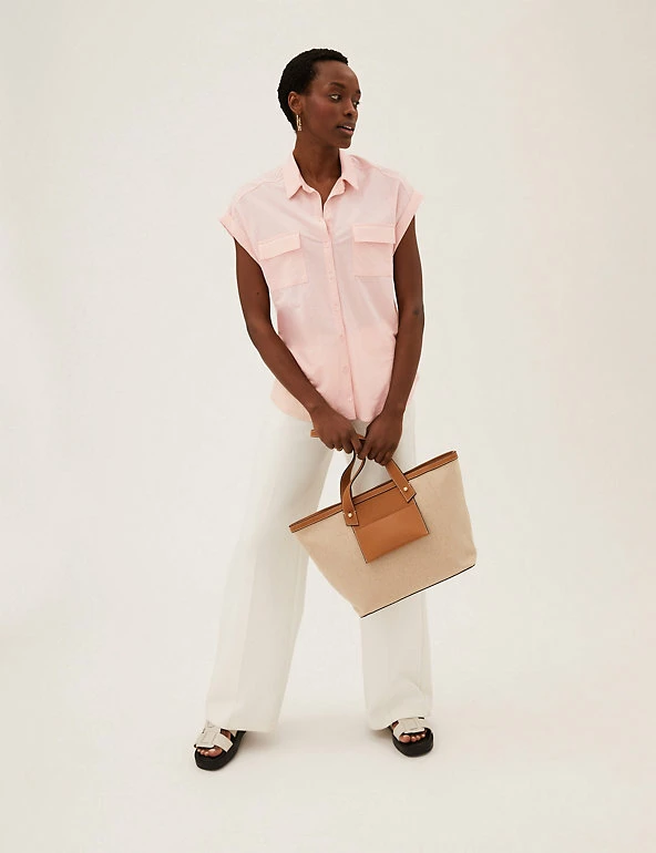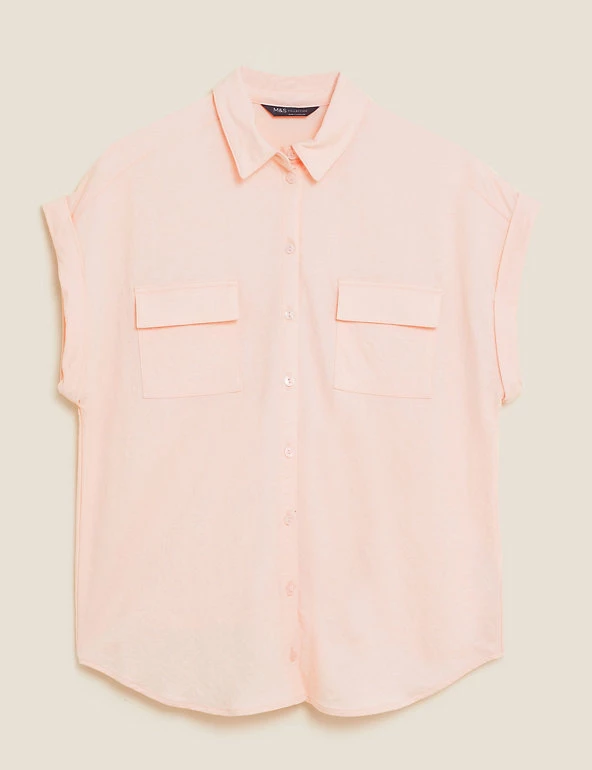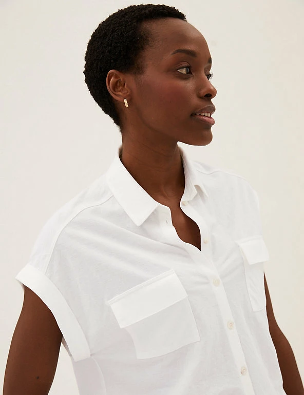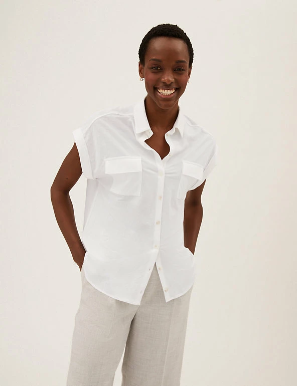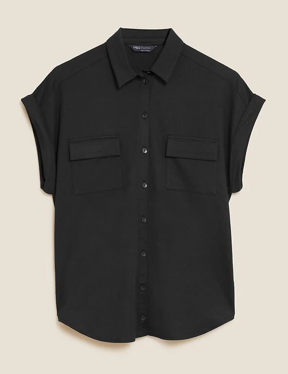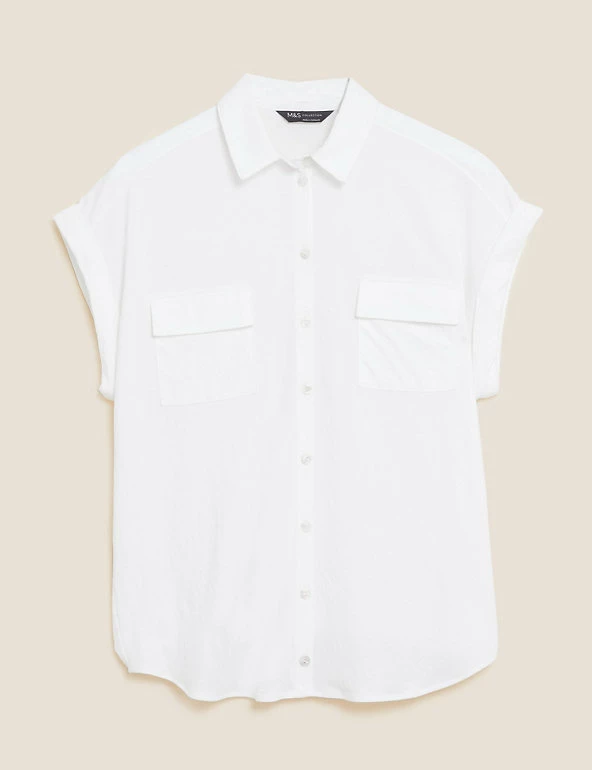Embrace warm weather with this casual utility shirt. Regular fit, with a classic collared neck and turned-up short sleeves. Flap pockets on the chest and a simple button-through closure.