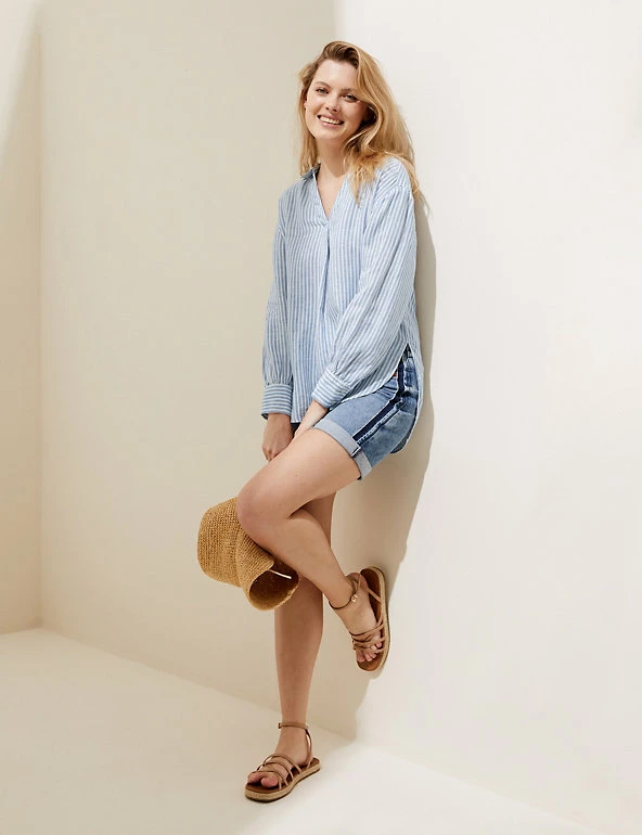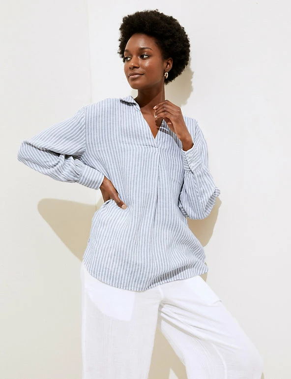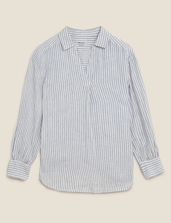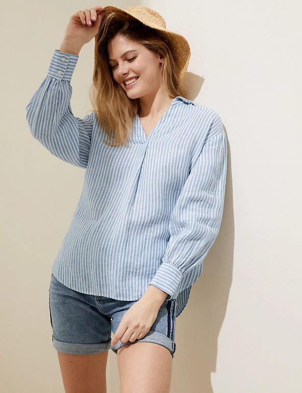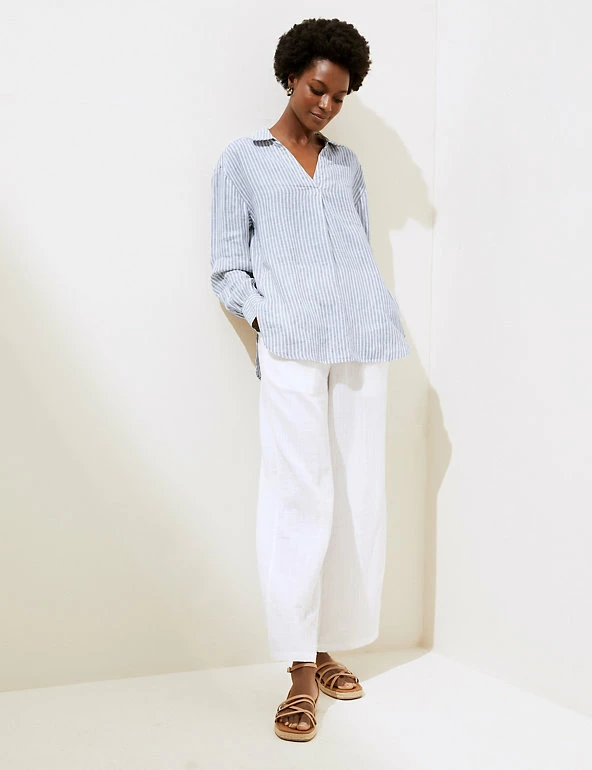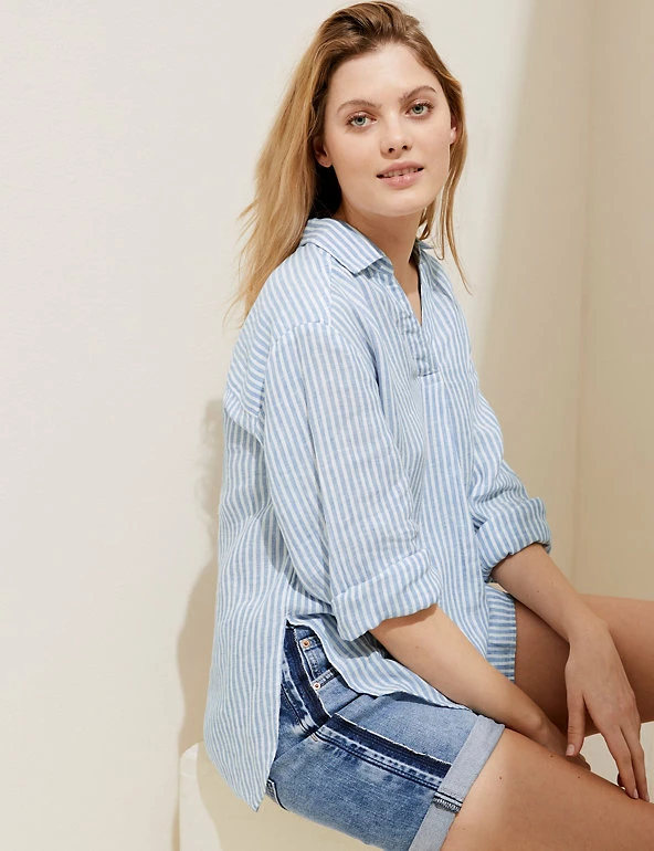 Lightweight and breathable, this pure linen blouse is ready for balmy days. Regular fit, designed in a chic popover style. Collared neck and neat stripes for a tidy finish.