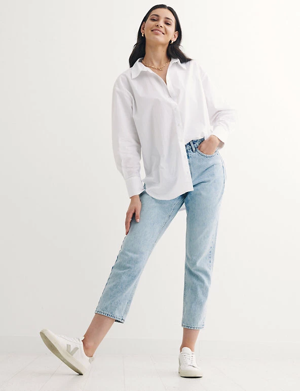 Bring an easy-breezy feel to your denim collection, with these pure cotton jeans from Nobody’s Child. They’re cut in a comfortable straight-leg style, with a flattering mid-rise waist and a laid-back cropped length. Their bleached wash and traditional five-pocket styling ensure a vintage-inspired air, while the button and zip fastening creates a neat look. At the back of the waistband, embroidered branding adds a subtle finishing detail. Made with organic cotton.