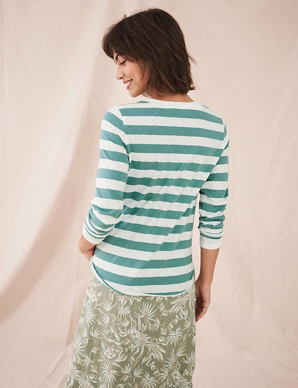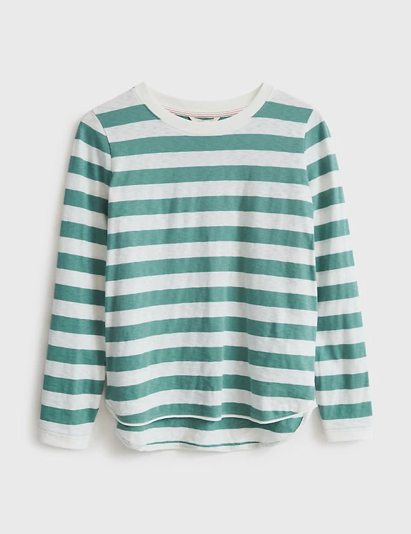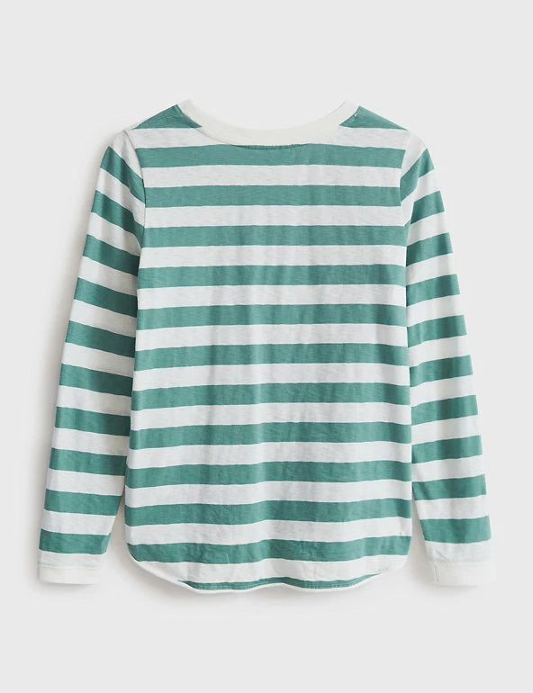 Breezy pure cotton meets bold stripes with this White Stuff top. It’s cut to a comfy regular fit, with long sleeves and a classic crew neckline. Ribbed trims add a casual feel, while the curved hem makes for a flattering finishing touch.