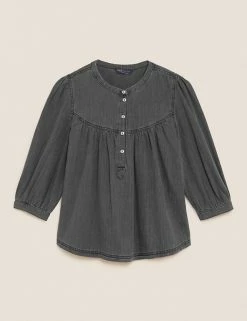Cheapest β€οΈ M&S Collection π Shirts & Blouses Denim Regular Fit 3/4 Sleeve Blouse π―