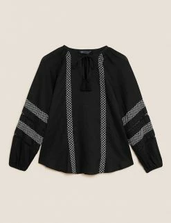 Flash Sale โ M&S Collection ๐ Shirts & Blouses Pure Linen Embroidered Tie Neck Blouse ๐ฅฐ