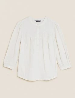 Promo ❤️ M&S Collection 👚 Shirts & Blouses Double Cloth Embroidered 3/4 Sleeve Blouse ✔️