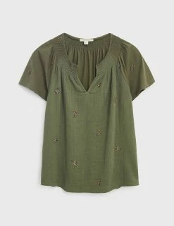 Top 10 ❤️ White Stuff 👕 Shirts & Blouses Pure Cotton Embroidered V-Neck Blouse 🌟