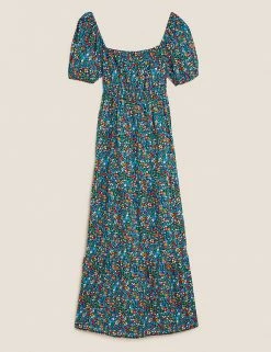 Best reviews of ๐ M&S Collection ๐ Dresses Pure Cotton Floral Midi Waisted ๐ Dress ๐คฉ