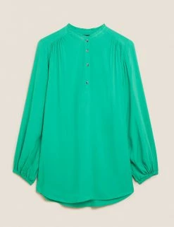 Budget 💯 M&S Collection 👚 Shirts & Blouses Longline Collarless Blouson Sleeve Blouse 🤩