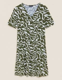 Best Pirce โ๏ธ M&S Collection ๐ Dresses Jersey Animal Print V-Neck Swing ๐ Dress โ