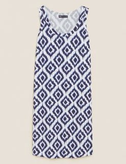 Brand new π M&S Collection π Dresses Linen Blend Printed Scoop Neck Shift π Dress π―