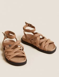 Cheapest 🎁 M&S Collection Leather Ankle Strap Flat 🩴 Sandals 🎁