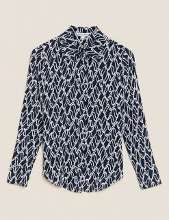 Best deal ๐ M&S Collection ๐ Shirts & Blouses Printed Collared Long Sleeve ๐ Shirt ๐