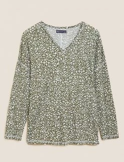Promo β€οΈ M&S Collection Women Linen Rich Printed V-Neck Longline Top π