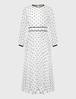 Wholesale 😉 HOBBS 👗 Dresses Polka Dot Round Neck Midi Waisted 👗 Dress ✔️