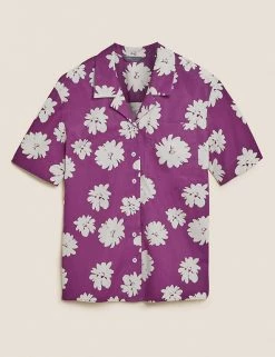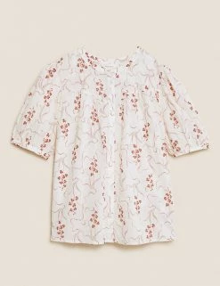 Cheapest 👍 M&S Collection 👕 Shirts & Blouses Pure Cotton Floral Short Sleeve Blouse 😉
