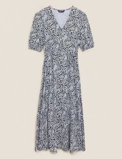 Best reviews of ๐ฅ M&S Collection ๐ Dresses Jersey Printed Knee Length Skater ๐ Dress ๐งจ