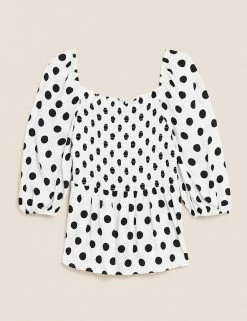 Budget β M&S Collection Women Polka Dot Square Neck 3/4 Sleeve Peplum Top π€©