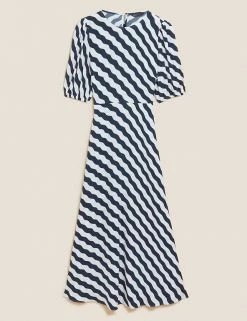 Flash Sale โค๏ธ M&S Collection ๐ Dresses Striped Puff Sleeve Midaxi Tea ๐ Dress ๐