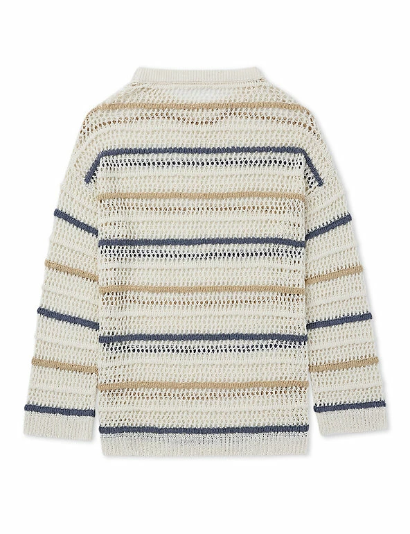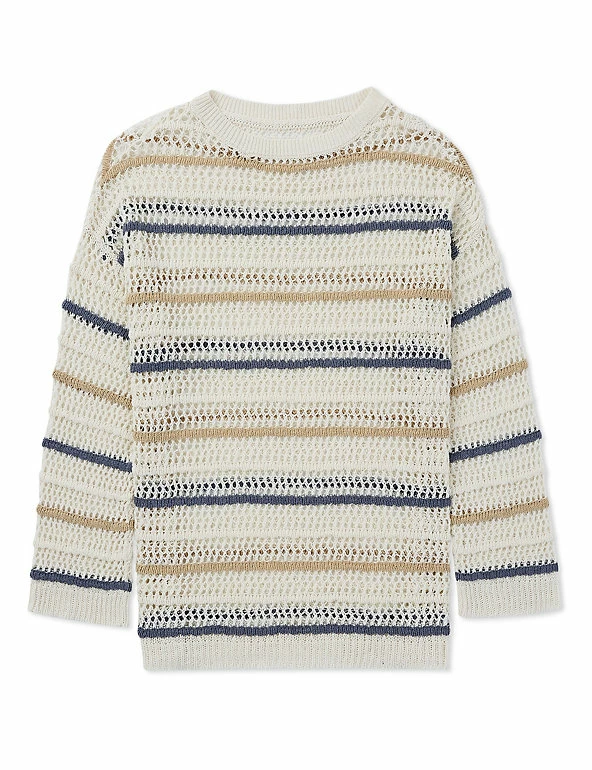 Reach for this airy pure linen jumper by Celtic & Co for effortless warm-weather days. It comes in a comfy regular fit, with a crew neck and dropped shoulders for a laid-back look. Its open knit design creates an easy-breezy feel. The jumper is complete with contrasting slim horizontal stripes and is crafted from Italian linen.