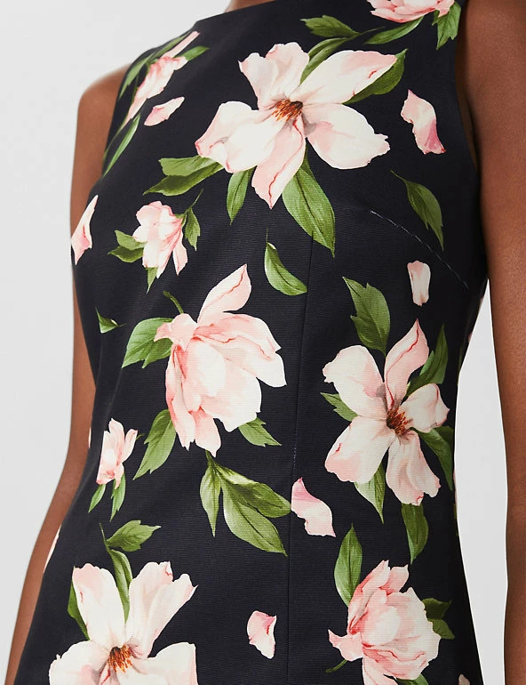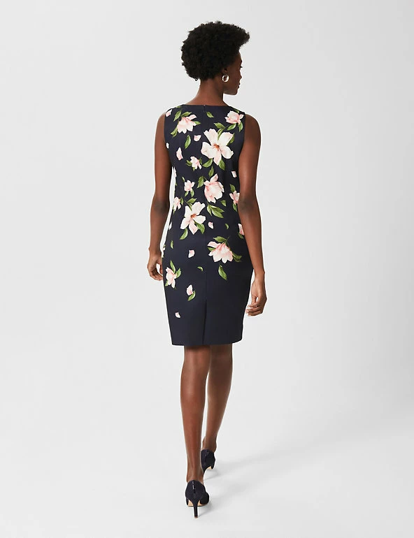 Stand out at your next event in this figure-hugging bodycon dress by Hobbs. This beautiful fitted piece features an all-over colourful blossom print for a statement-making look. It has a classic round neck, elegant knee-length hem and modern sleeveless cut. A handy back-zip fastening makes for easy on and off.