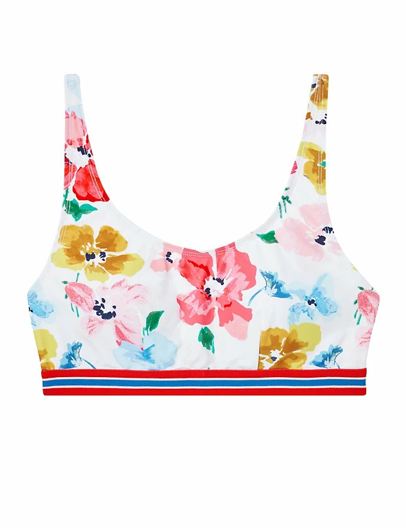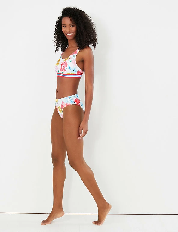 Elevate your poolside style with this floral bikini top from Joules. This flattering v-neck design has a tank-style front for extra coverage, plus a comfortable elastic panel under the bust. The straps are adjustable for your perfect fit and a thick band at the back offers a secure feel in and out of the water.