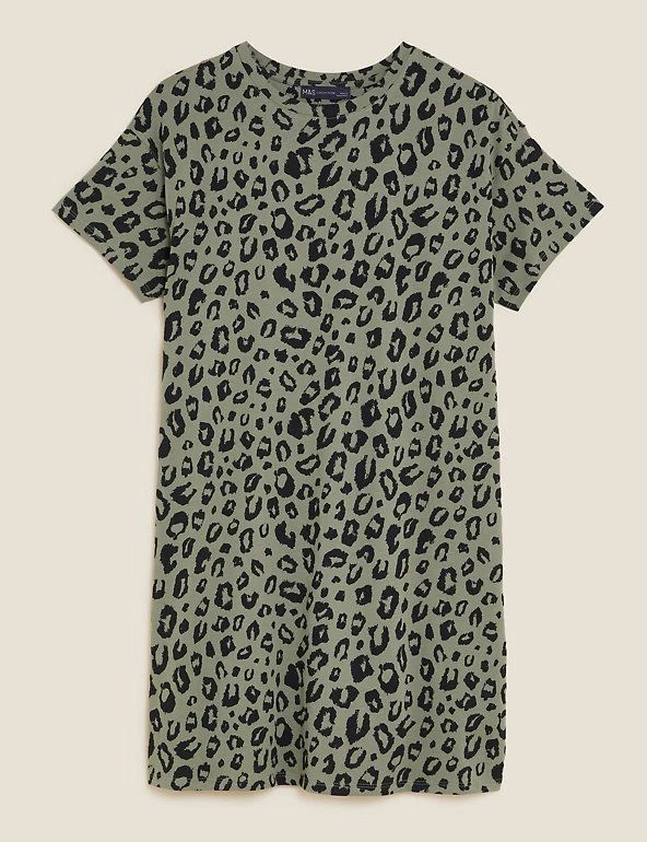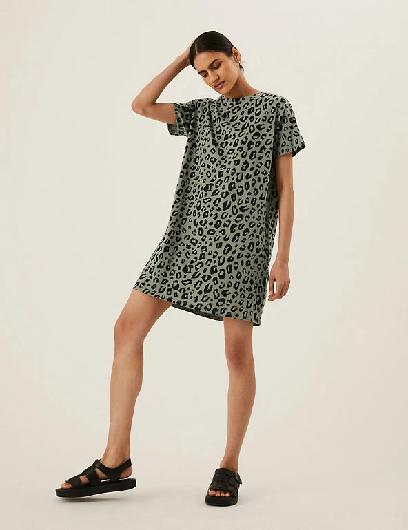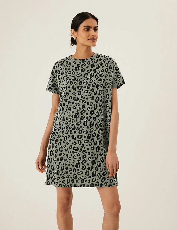 Add a wild touch to your casual ensemble with this pure cotton t-shirt dress, featuring a bold animal print. It’s cut to a regular fit in a playful mini length with short sleeves for a breezy feel. A round neck brings a simple finish.
